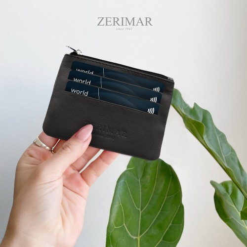 Borsa in pelle con cerniera e portachiavi 8x10,5 cm
