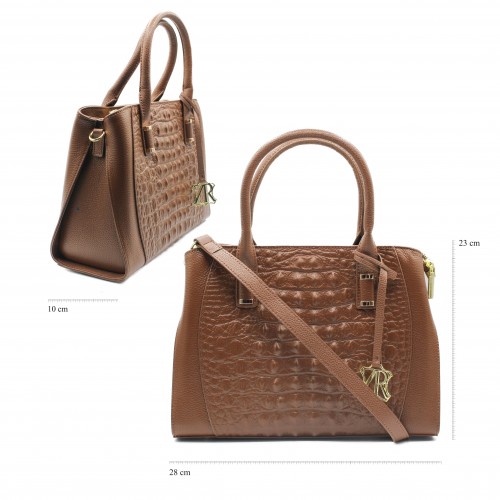 Borsa in pelle goffrata con doppio manico 28x23x10 cm