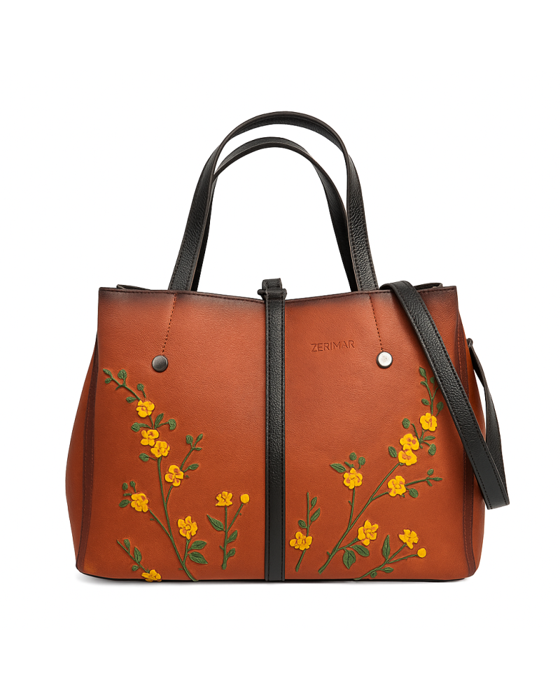 Borsa in pelle con doppi manici 24x30x13 cm FIORI