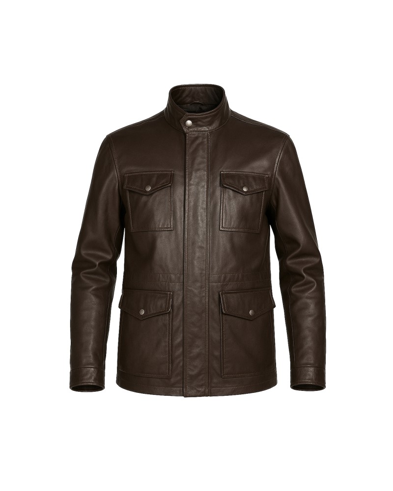 Giubbotto in pelle con doppia chiusura e tasche modello FISHER