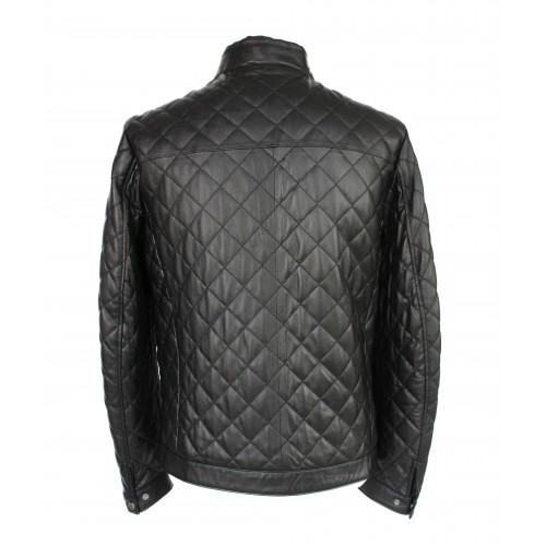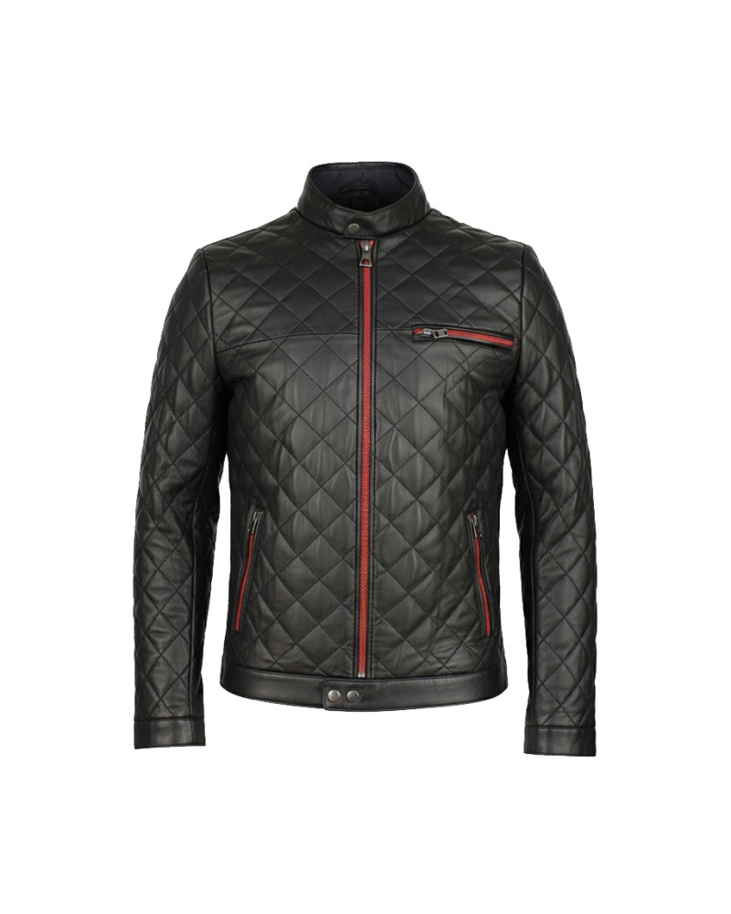 Giubbotto in pelle trapuntata con dettaglio rosso