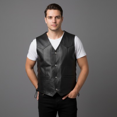 Maglia pelle con taschi e cordony laterali