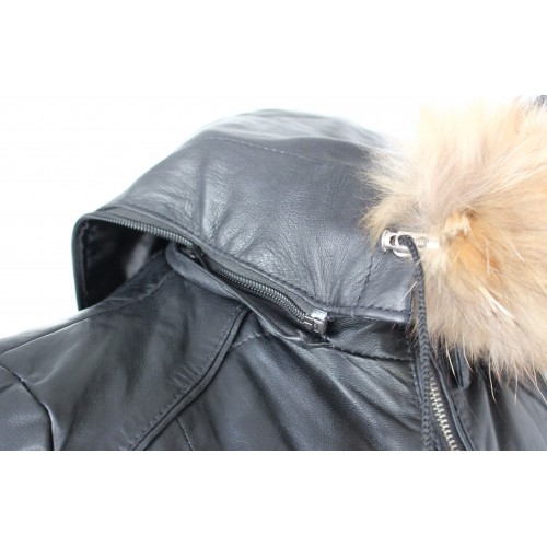 Giubbino in cuoio con cappuccio di raccoon modello ALMOND