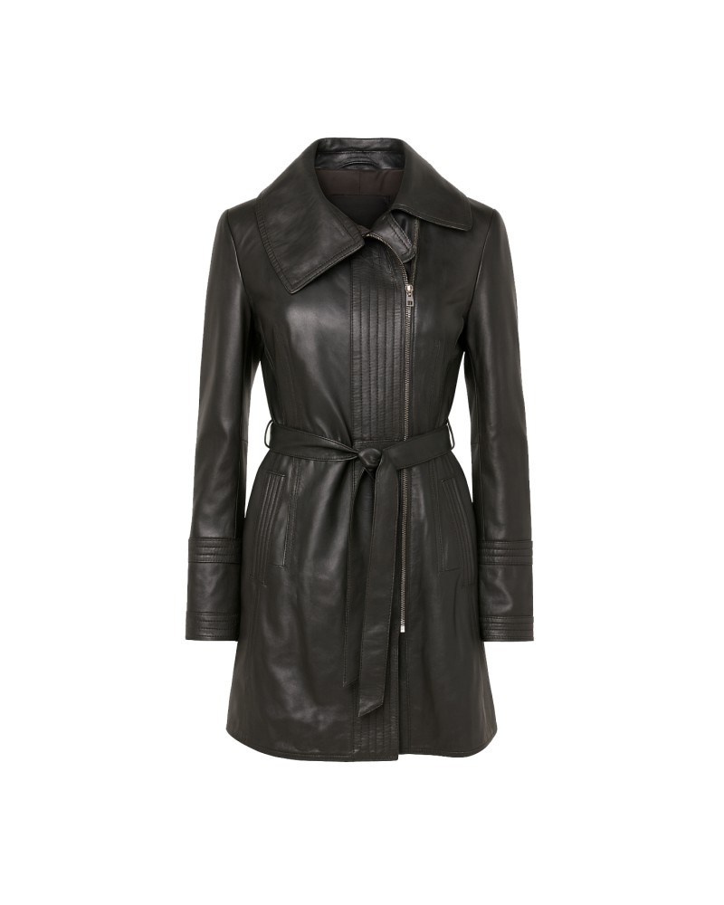 Trench in pelle con cerniera e cintura modello BLACKY