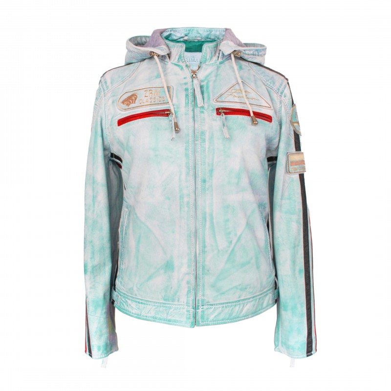 Giubbotto in pelle con toppe e cappuccio staccabile BOLLWOM