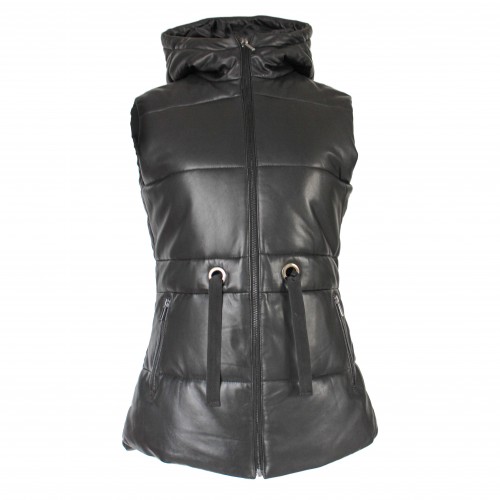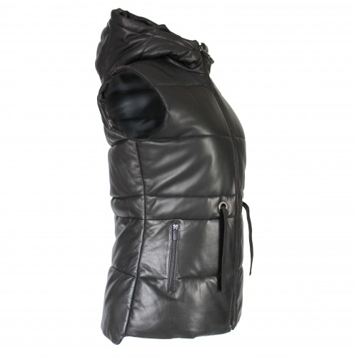 Gilet fatto in pelle naturale. Ha una chiusura a cerniera sul davanti e due tasche laterali con chiusura a cerniera.