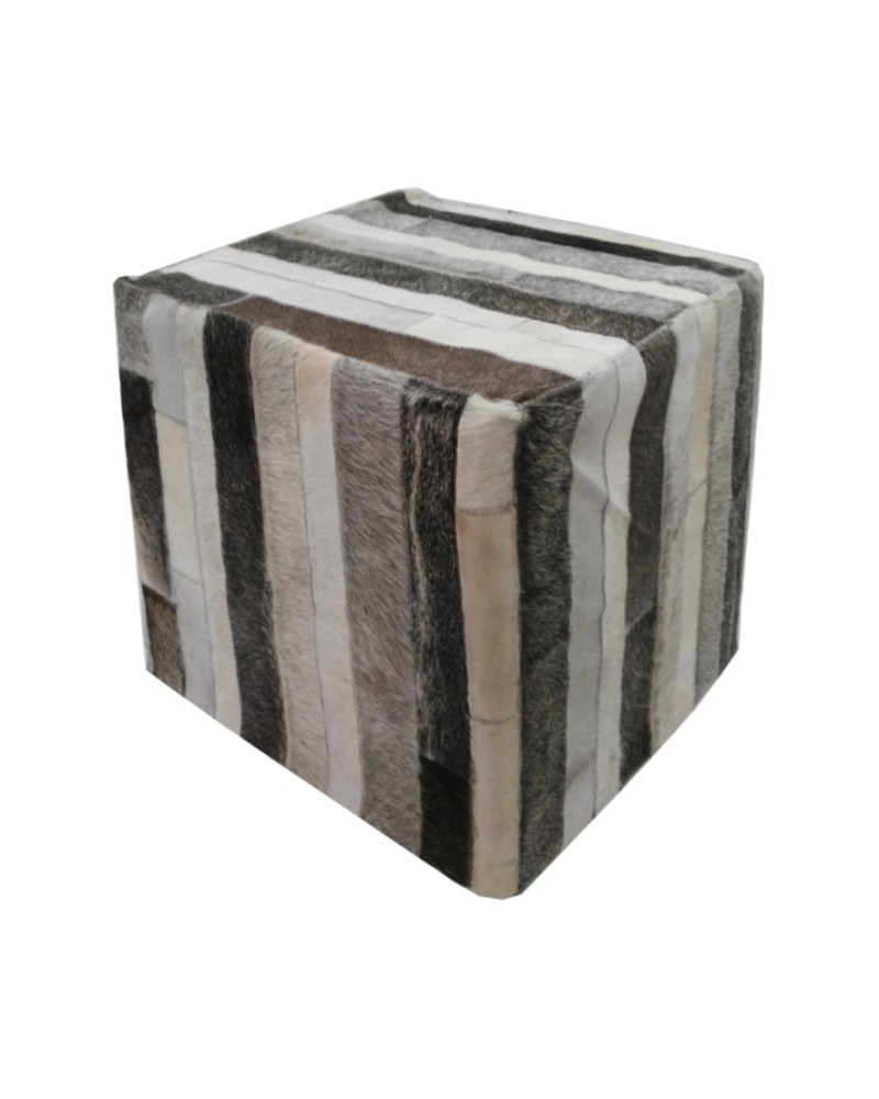 Sgabello imbottito rivestito in pelle di mucca 45x45x45 cm