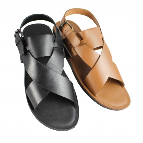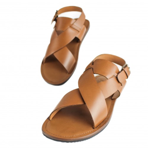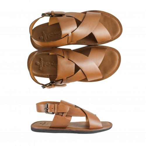 Sandalo incrociato in pelle con fibbia modello MATEO